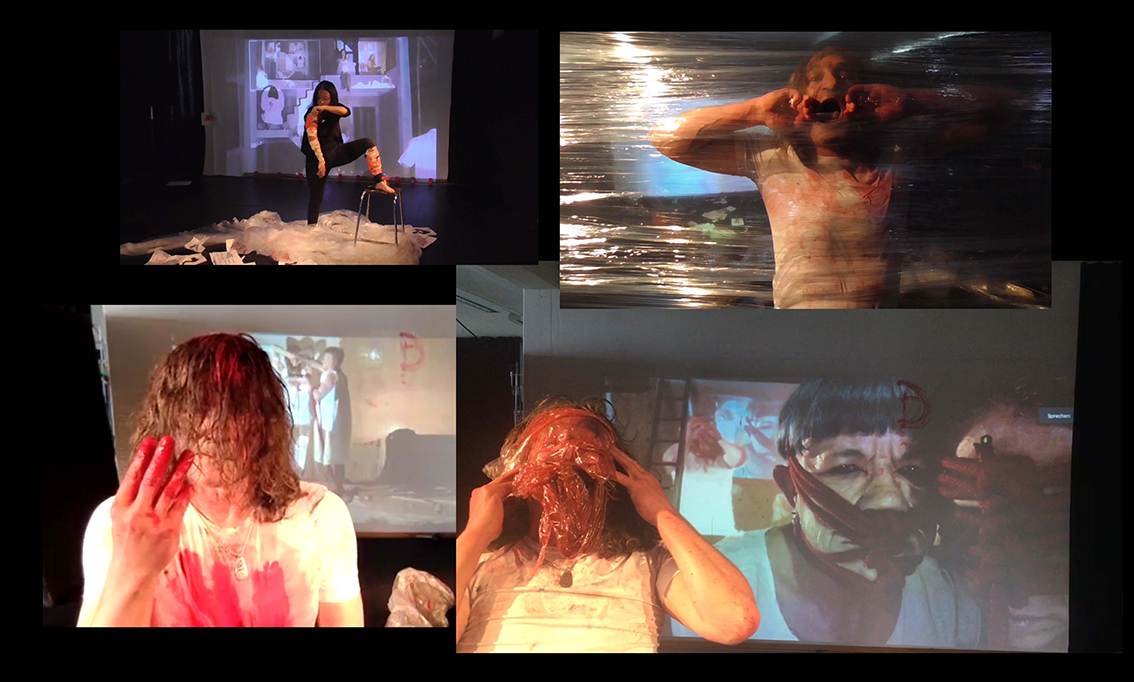 Developed during the pandemic, the format enables new forms of international collaboration. Performers act simultaneously in different locations, connected via Zoom. Working between webcam and large-scale projection, they create shared performative spaces that overcome distance and open new artistic dialogues.