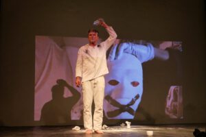 Das während der Pandemie entwickelte Format ermöglicht neue Formen internationaler Zusammenarbeit: Performer*innen agieren zeitgleich an verschiedenen Orten, verbunden über Zoom. Zwischen Webcam und raumfüllender Projektion entstehen gemeinsame performative Räume, in denen Distanzen überwunden und neue künstlerische Dialoge eröffnet werden.