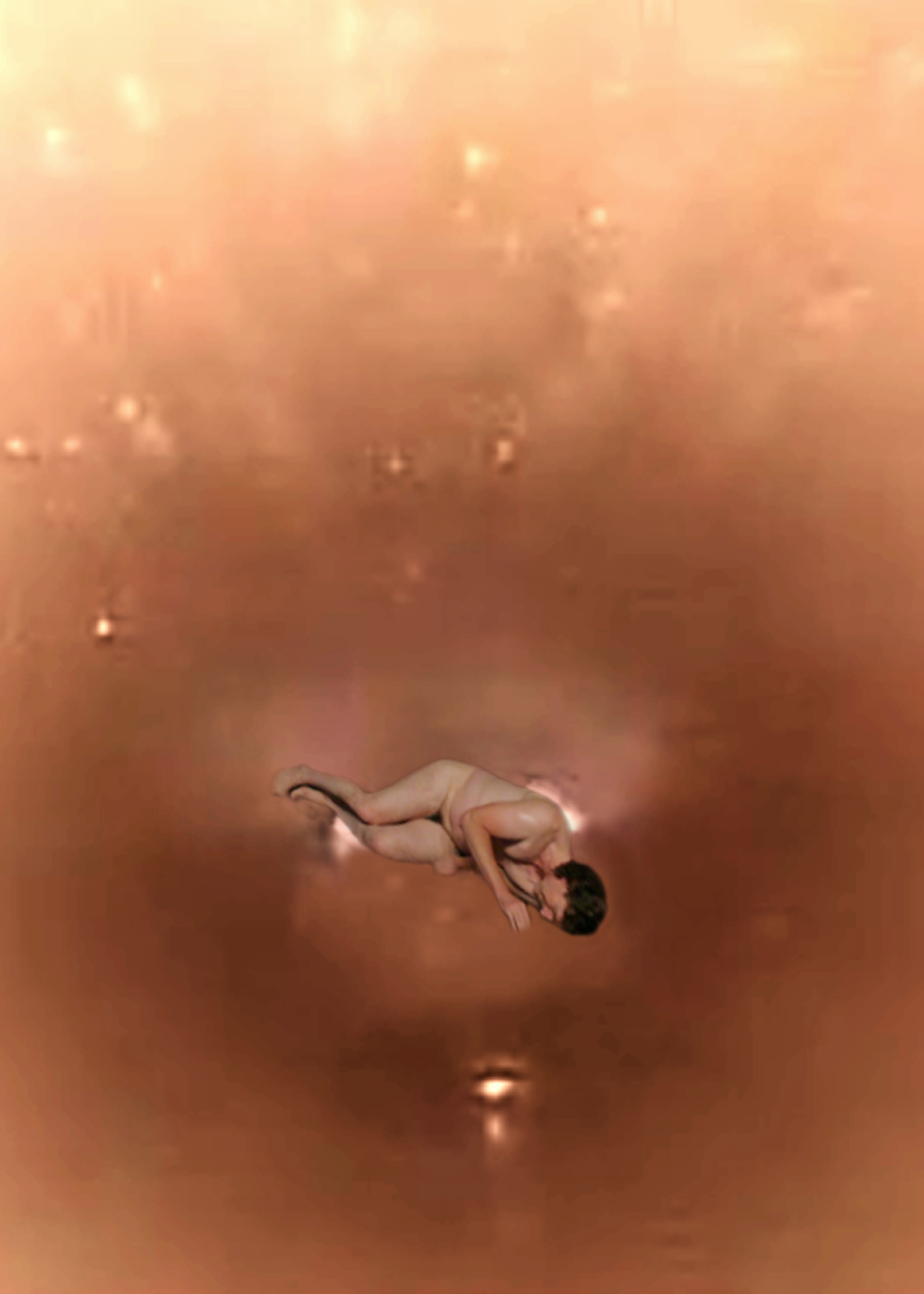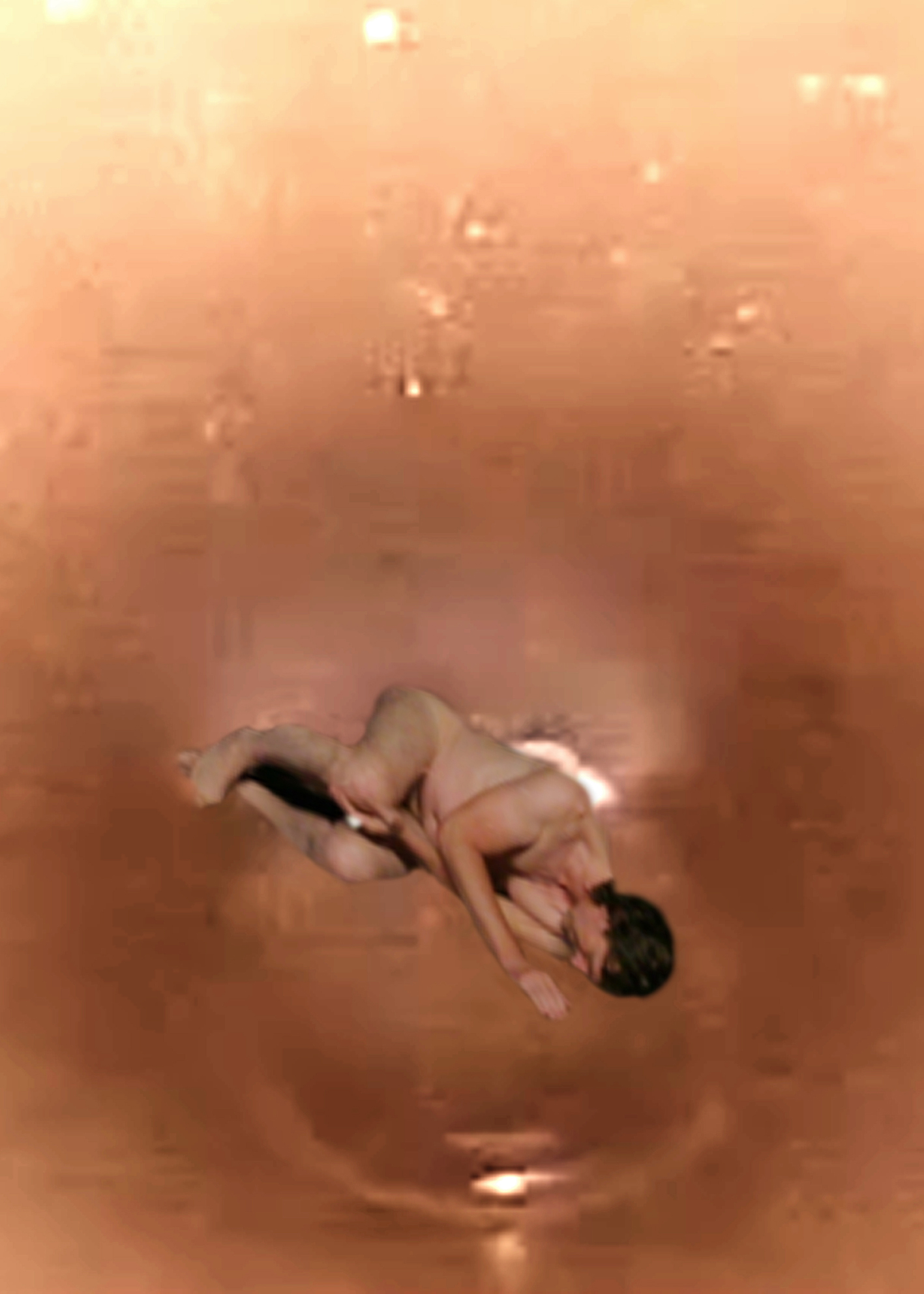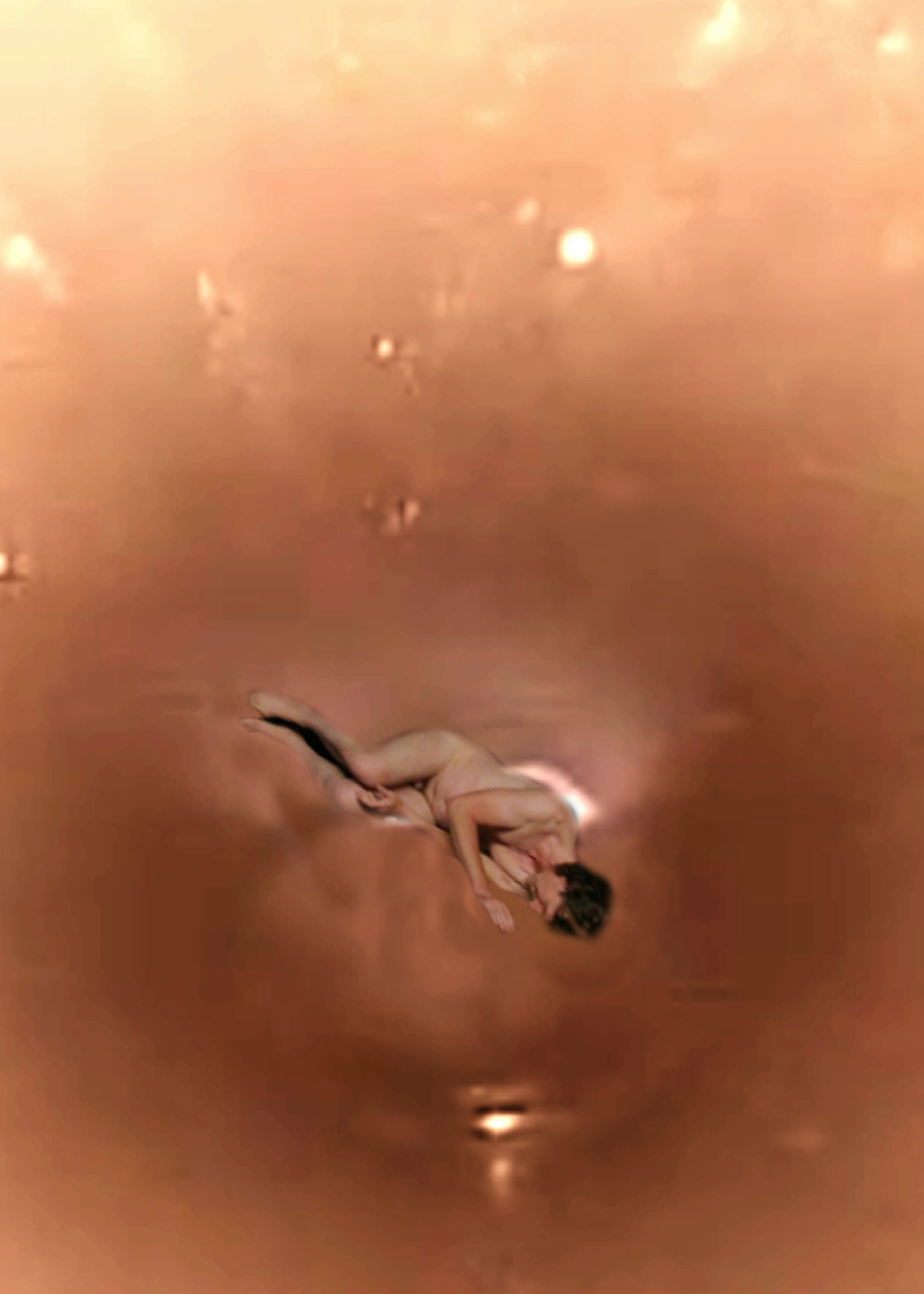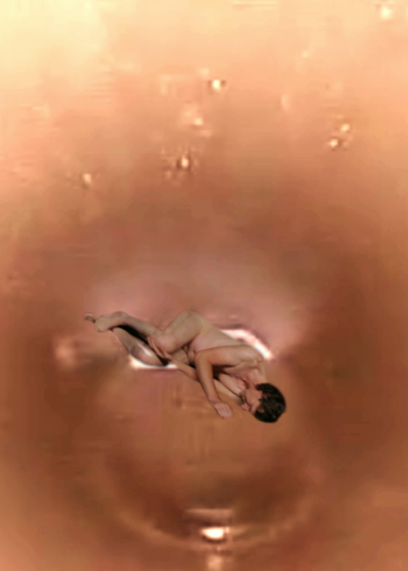 Elementary gestures — lying, sheltering, rising, standing, slipping away — mark transitions between protection, gravity, and dissolution.