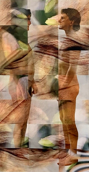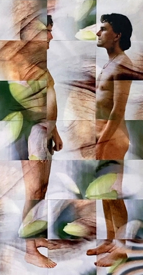 „Wandlungen“ – Blickwechsel und Bedeutungsverschiebungen Plastikflaschen, ein schimmerndes Meer, ein nackter Körper: In Andreas Hoffmanns neuem Werkzyklus verschmelzen Motive, die im Alltag getrennt erscheinen, zu einer gemeinsamen Bildwelt. Seine Arbeit bewegt sich seit vielen Jahren zwischen Fine Art und Performance Art. In den aktuellen Werken verlagert sich die Bewegung vom Live-Moment ins Bild, die Wahrnehmung und Blickwinkel der Betrachtenden. Zentrales Mittel ist die Linsenrastertechnik. Mehrere Motive überlagern sich und werden je nach Blickwinkel sichtbar. Wer sich bewegt, entdeckt neue Bildkombinationen – das scheinbar statische Werk wird zur interaktiven Erfahrung. Der Betrachter wird Teil der künstlerischen Choreogra-fie. Thematisch verhandelt Hoffmann Umweltkrisen, Übernutzung der Natur und menschliche Verdrängungsmechanismen, ohne Alarmismus. Die Bilder erschließen sich langsam und poetisch. Immer wieder erscheint der eigene Körper: nackt, verletzlich, eingebettet in Wasser, Plastik oder ausgedörrte Landschaften. Die Nacktheit ist kein provokantes Mittel, sondern Ausdruck von Abhängigkeit, Vergänglichkeit und Veränderung. Auch die formale Struktur trägt die Inhalte: Großformatige Arbeiten aus Kacheln verweisen auf Fragmentierung und Übergang. Nichts wirkt abgeschlossen oder monumental, alles bleibt in Bewegung. Neben ökologischen Themen finden sich biografische und humorvolle Ebenen. Die Begegnung des heutigen Künstlers mit seinem jüngeren Selbst oder humorvolle Akzente, etwa mit einer Papageienfigur im Luftschloss ergänzen den ernsten Kern die Leichtigkeit und Illusion zugleich verkörpert. Es gibt eine elementare Verflochtenheit von allem mit allem. Diese Verflochtenheit bildet die ästhetische Logik von Hoffmanns Werk. Die Technik macht sichtbar, was sich überlagert, aber selten gleichzeitig wahrgenommen wird. So entsteht Kunst, die sinnlich wie gedanklich wirkt, nicht durch Parolen, sondern durch Blickwechsel.