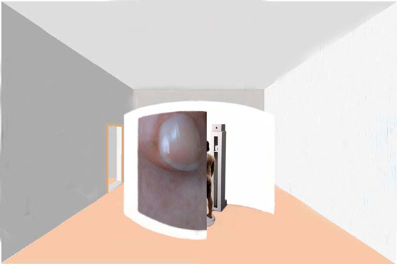 Die entstehenden Bilder werden live auf eine Rundleinwand projiziert und sind für die teilnehmende Person sichtbar. Durch die Nähe und die Fragmentierung wird die gewohnte Wahrnehmung des Körpers aufgehoben: Die Haut erscheint als Landschaft und als abstraktes Bild jenseits von Wiedererkennen und Zuschreibung. Die Aktion kann sowohl als intime, individuelle Erfahrung als auch als öffentliche Performance realisiert werden.